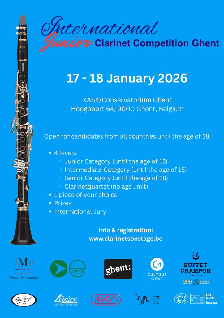16jan(jan 16)8:00 am17(jan 17)11:59 pmInternational Junior Clarinet Competition Ghent