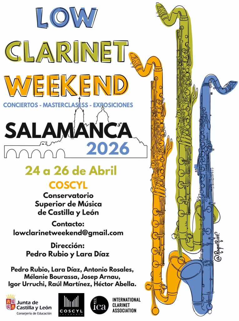 We are pleased to announce the LOW CLARINET WEEKEND SALAMANCA 2026, which will be held on April 24th to 26th. Concerts, masterclasses and exhibitions, all with free admission. Information at: [email protected]